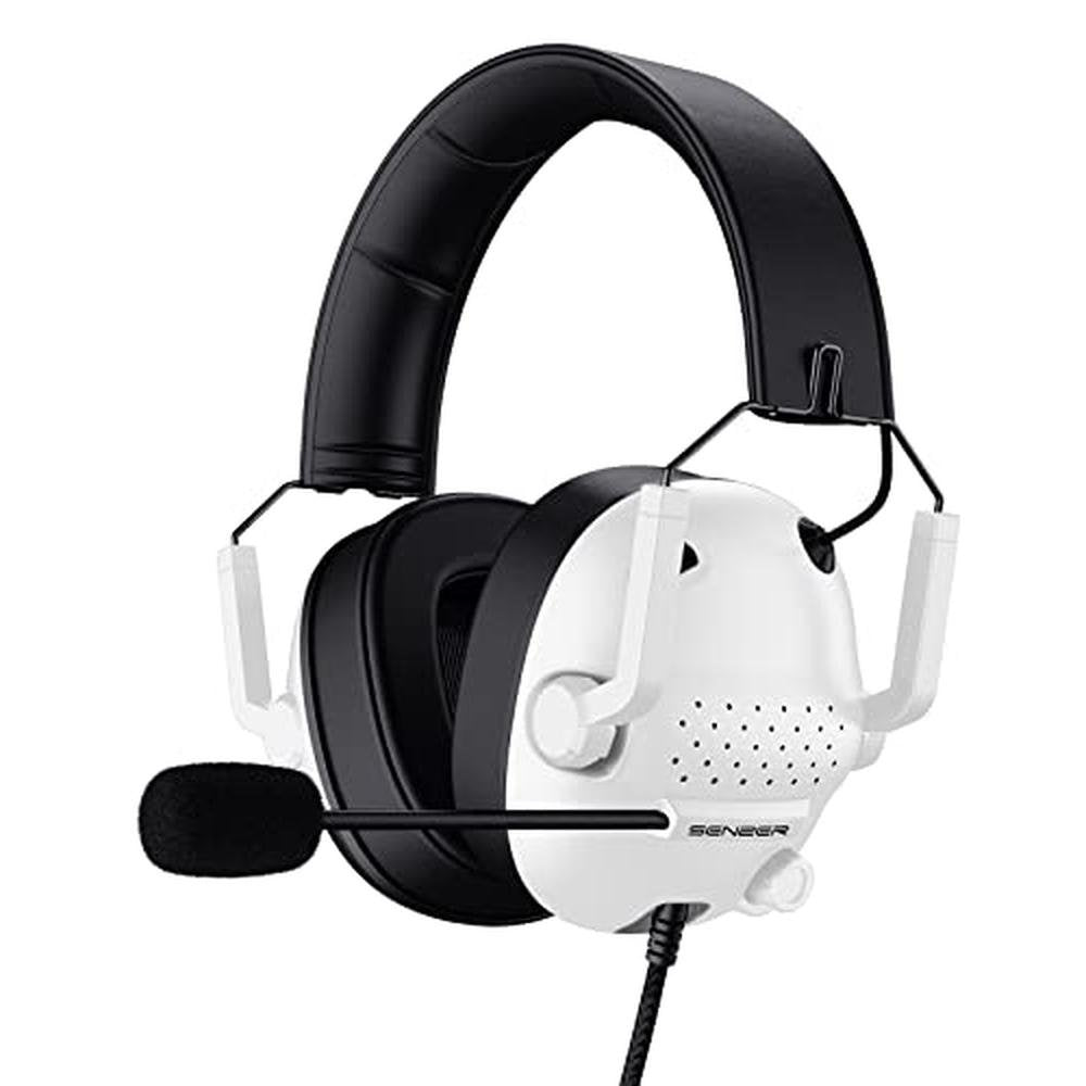 SENZER SG500 Surround Sound Pro Gaming Headset with Noise Cancelling Microphone - Soft Memory Foam Padding - Portable Foldable Headphones for PC, PS4, PS5, Xbox One, Switch - White