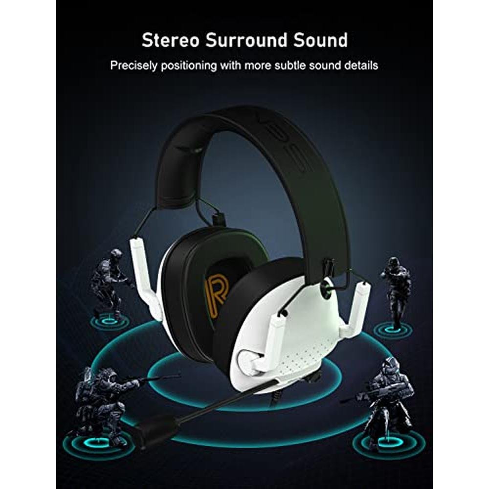 - [SURROUND SOUND CAPABLE]: Proven to enhance your gaming performance, this surround sound gaming headset gives you crystal clear audio and provides you a truly immersive video game experience. Pick up the direction of gunfire, vehicles and voices more clearly, as well as enjoying a more enhanced audio experience as subtle sounds like footsteps, wind and rain are projected with more clarity and precision.