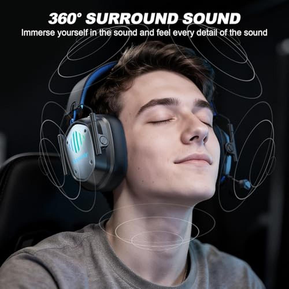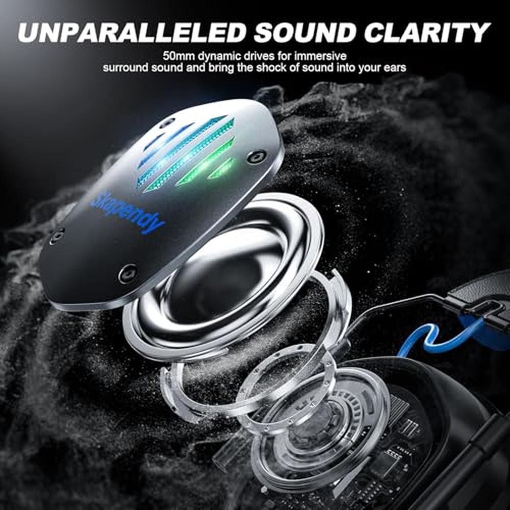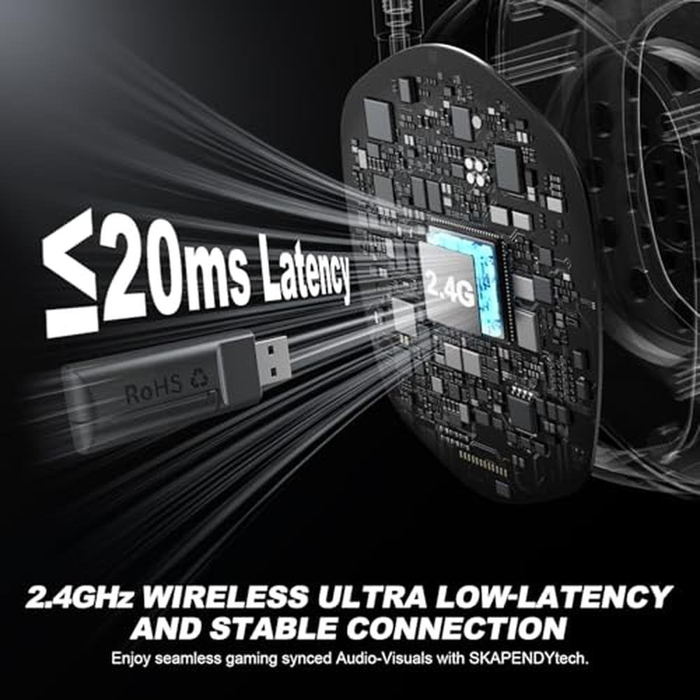 SKAPENDY Wireless Gaming Headset for PS5, PS4, 2.4GHz Gaming Headphones with 50mm Drivers, 3D Surround Sound, ENC Mic, RGB Lights, 50-Hr Gametime for PC, Switch, Mac, Mobile,