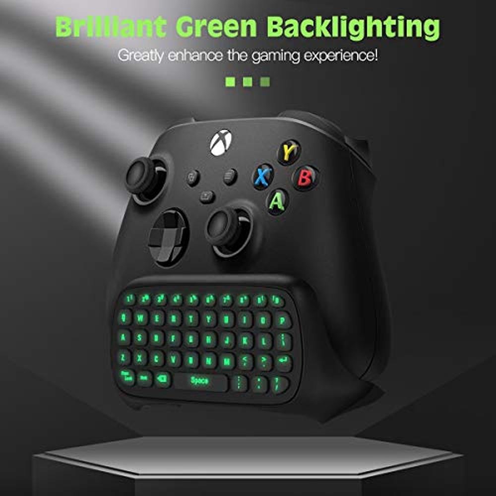 Immerse yourself in the world of premium gaming with our Timovo green backlight keyboard, expertly designed for Xbox One, Xbox Series X, and S consoles. This sophisticated wireless chatpad boasts a mini game keyboard, headset audio jack, and a 2.4G receiver for seamless connectivity. Elevate your gaming experience with our high-end keyboard, crafted to provide unparalleled comfort, precision, and style. Whether you're a professional gamer or an avid enthusiast, our Timovo keyboard is the perfect accessory to enhance your gaming routine.