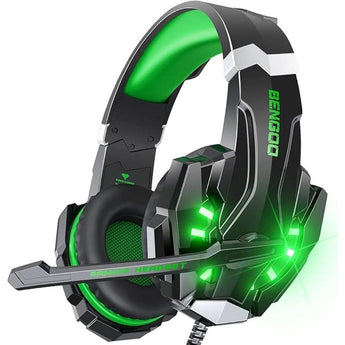 BENGOO G9000 Stereo Gaming Headset for PS4 PC Xbox One PS5 Controller, Noise Cancelling Over Ear Headphones with Mic, LED Light, Bass Surround, Soft Memory Earmuffs for Laptop Mac - Green