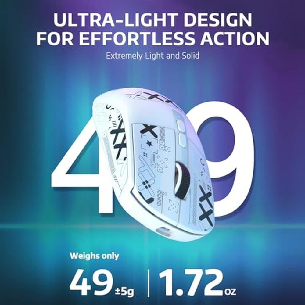 - MANBASNAKE ATTACK SHARK 49g Ultra-lightweight MouseX6 Aerox gaming mouse designed for speed and precision. Through meticulous engineering and innovative liquid nitrogen cooling injection moulding, strength is guaranteed while achieving a thinner and lighter shell. This white mouse is perfect for all RPG, MMO, FPS, MOBA, Battle Royale and other fast-paced games.