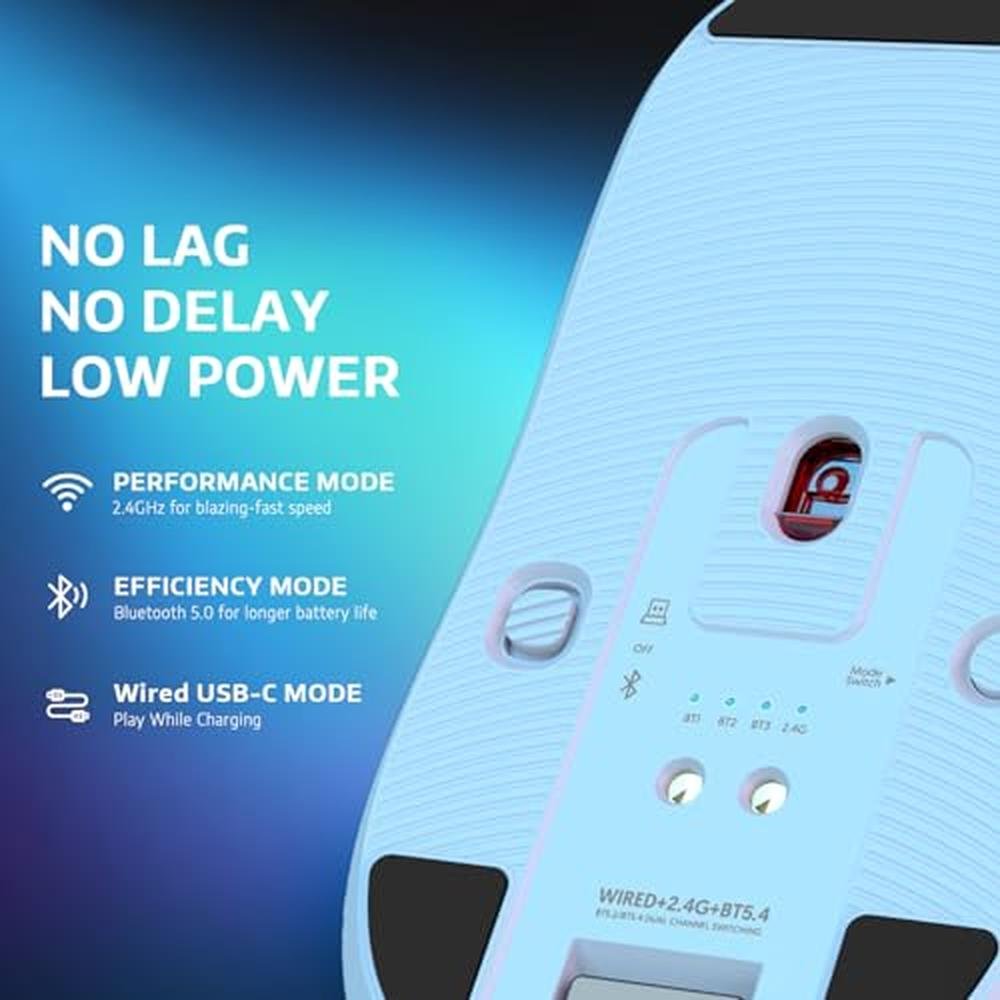 - Tri-mode Connectivity & 6 Pcs Non-Slip Grip TapeBluetooth 5.2 + 2.4Ghz Wireless + Wired using. Choose between lag-free 2.4 Ghz mode for blazing fast performance, or the brand new Bluetooth 5.2 for seamless pairing with phones, tablets, and other devices, or play in wired mode with the ultra-flexible charging cable. A 1.6m long paracord cord is included in the package.