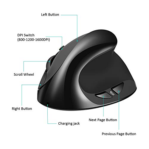 Aurtec Vertical Mouse | Aurtec Rechargeable 2.4G Wireless Ergonomic Mouse | 6 Buttons and 3 Adjustable DPI