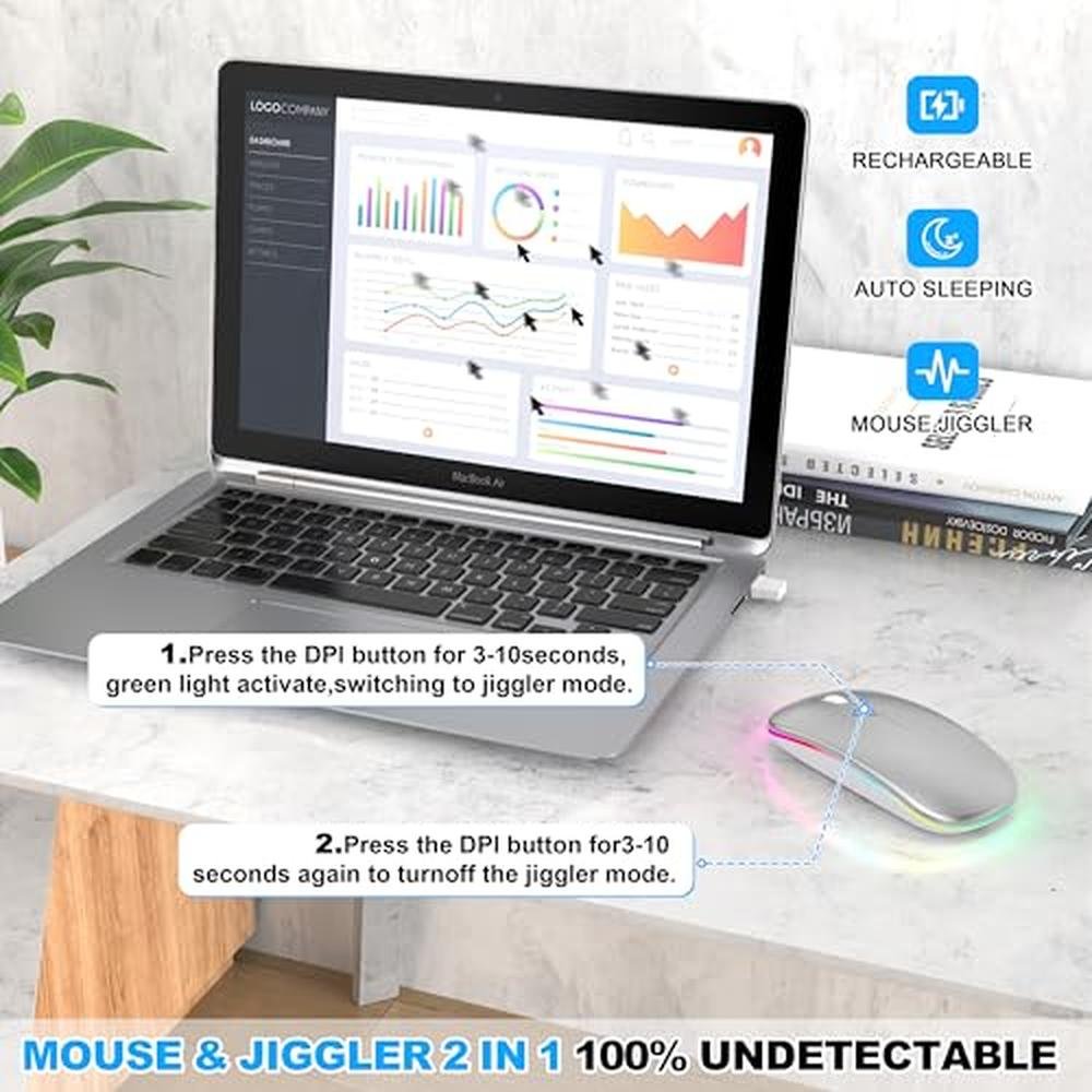 Elevate your workflow with the Azmall LED Wireless Mouse, featuring a silent click design that allows you to stay focused without disturbing others, making it perfect for offices, libraries, or late-night use. With 3-level adjustable DPI (800/1200/1600), you get precise cursor control for all tasks, from browsing to gaming. Plus, the built-in mouse jiggler mode keeps your screen awake during video calls, presentations, or downloads, even when you're away, ensuring you stay connected and productive.