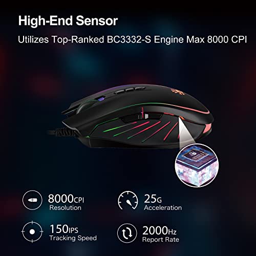 - High-precision optical sensor with adjustable CPI up to 8000 and 2000Hz report rate