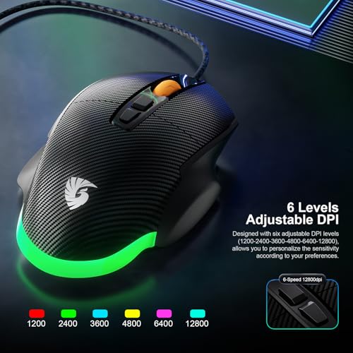 - 12800DPI optical sensor for accurate tracking and swift movement