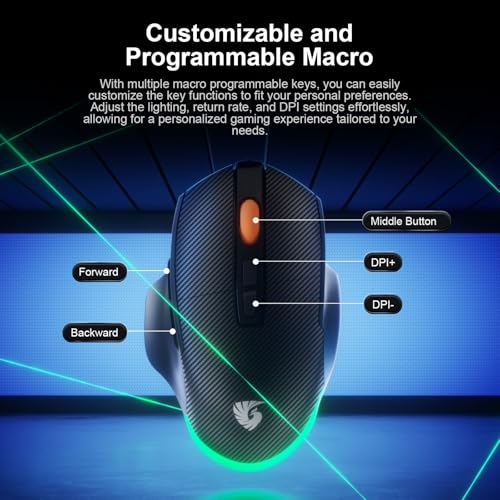 Unlock the full potential of your gaming and productivity experience with the Chatreey Wireless Gaming Mouse, featuring a range of advanced features and technologies. This premium mouse boasts a programmable macro 7-button design, allowing for customized control and enhanced performance. With its ergonomic shape and corded Bluetooth connectivity, this mouse provides a comfortable and reliable user experience. Whether you're gaming, working, or creating, this mouse delivers exceptional results and is perfect for those seeking a high-performance, premium-grade mouse.