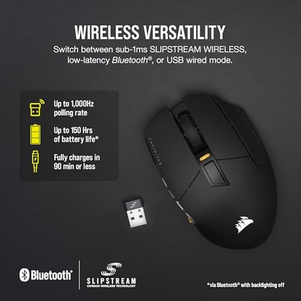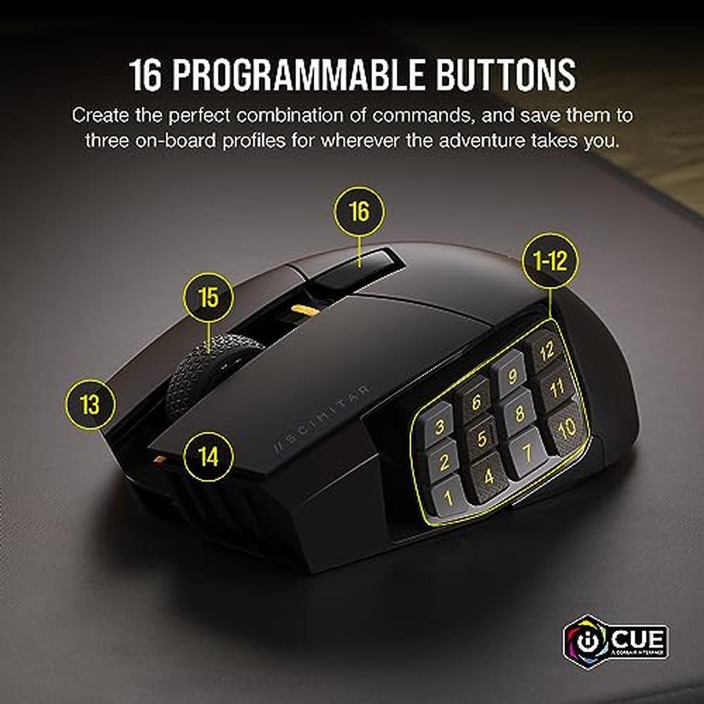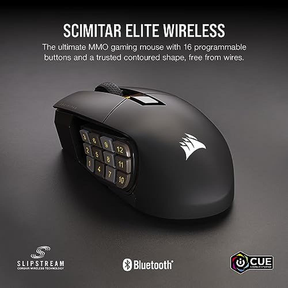 Corsair Scimitar Elite RGB Wireless MMO Gaming Mouse - 26,000 DPI - 16 Programmable Buttons - Up to 150hrs Battery - iCUE Compatible - Black