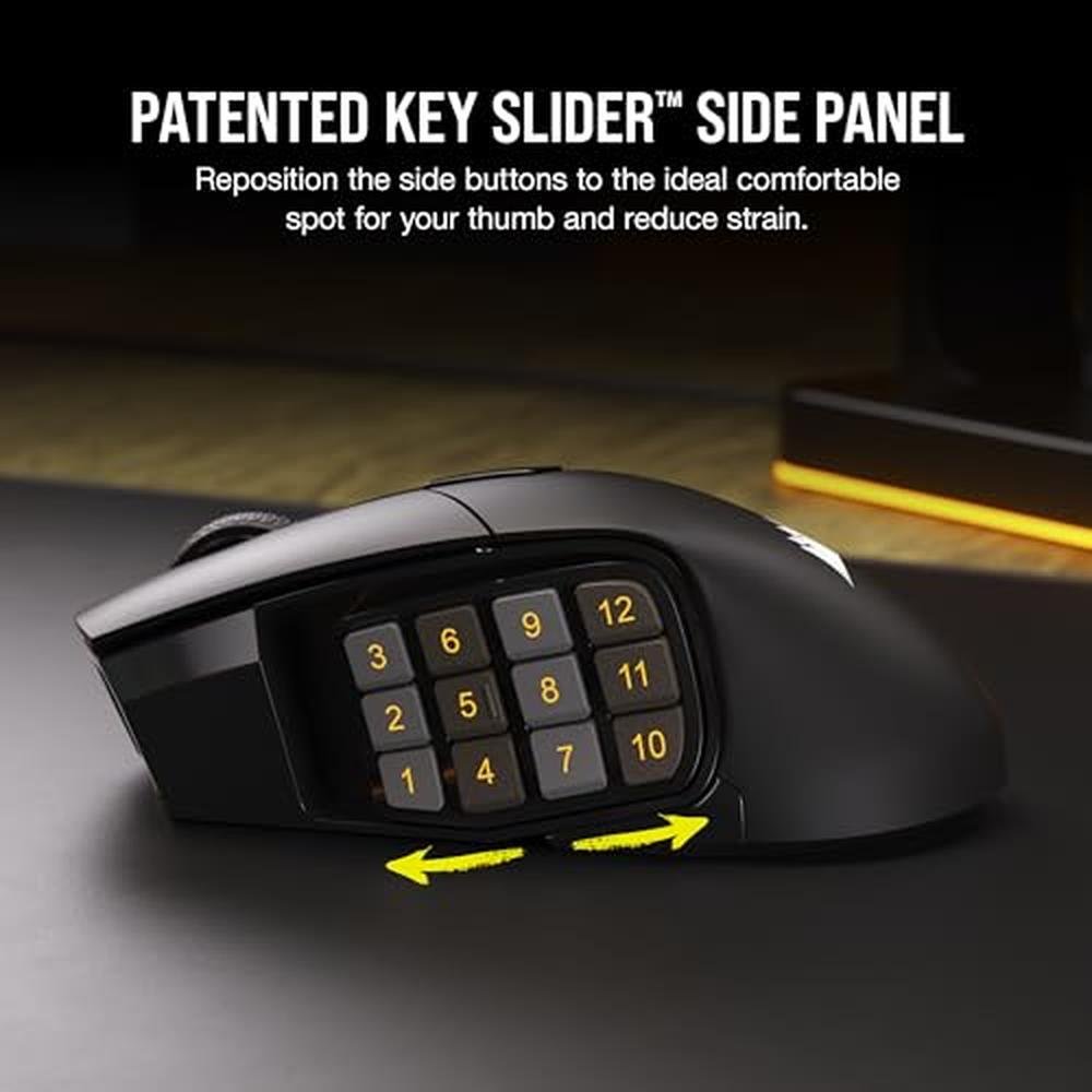 - Adjustable For any Size Hand: Repositionable 12-button Key Slider puts all side panel buttons in the ideal spot for your thumb, and the mouses contoured shape greatly reduces strain while gaming.