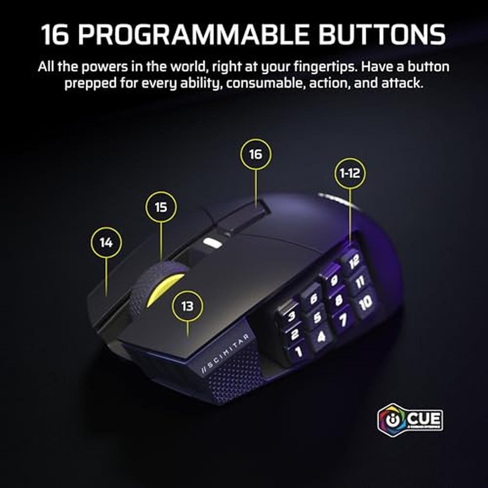Corsair Scimitar Elite Wireless SE MMO PC Gaming Mouse 33,000 DPI, 16 Programmable Buttons, Key Slider, Elgato Virtual Stream Deck, 1,000Hz Polling, Up to 150-Hour Battery Gunmetal