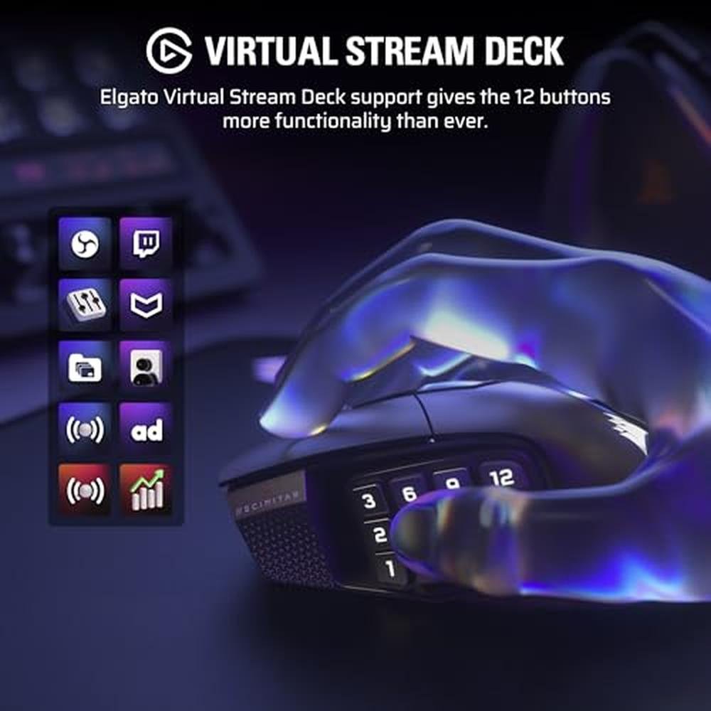 - Elgato Stream Deck Integration: Native Elgato Stream Deck integration allows you to directly map Stream Deck functions to the SCIMITAR ELITE WIRELESS SE from the Stream Deck App, so your most important functions are just a button away