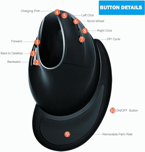 - Eelexa Ergonomic Vertical Mouse features a unique ergonomic design with a removable palm rest for optimal hand positioning and reduced strain