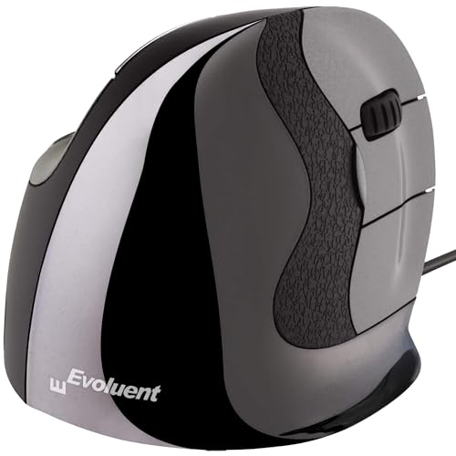 Experience the ultimate in comfort and productivity with the Evoluent VMDM Vertical Mouse 4, designed specifically for right-handed users. As a top-rated vertical mouse, this ergonomic wired USB mouse helps reduce the risk of carpal tunnel and other repetitive strain injuries. With adjustable speed and programmable buttons, you can customize your mouse to fit your needs, whether you're a gamer or office worker. Unlike traditional mice, the vertical mouse design allows your hand to rest in a neutral position, reducing strain and discomfort. Whether you're looking for the best vertical mouse ergonomic, the Evoluent VMDM Vertical Mouse 4 is an excellent choice. Its premium-grade design and advanced features make it an ideal option for those seeking a high-performance vertical mouse. The mouse's ergonomic design and adjustable speed allow for a personalized experience, while its programmable buttons provide enhanced functionality. For gamers and office workers alike, the Evoluent VMDM Vertical Mouse 4 offers a superior computing experience.