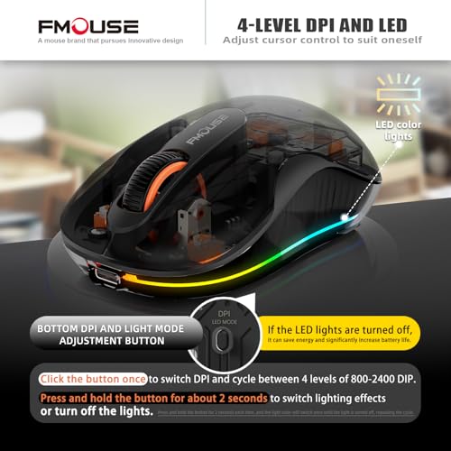 - The FMOUSE Novel Transparent Wireless Mouse features advanced tri-mode connectivity with dual Bluetooth and 2.4GHz for seamless navigation and effortless pairing