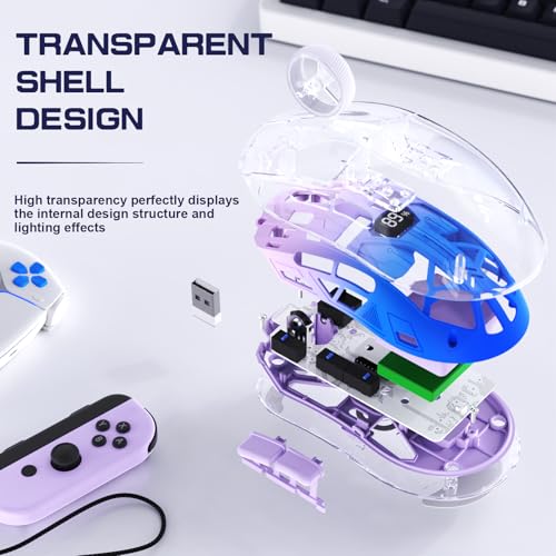 Mouse Gaming | FREEWOLF A2 Transparent Wireless Gaming Mouse Dual Mode BT 5.0 2.4G | Premium Gaming Performance