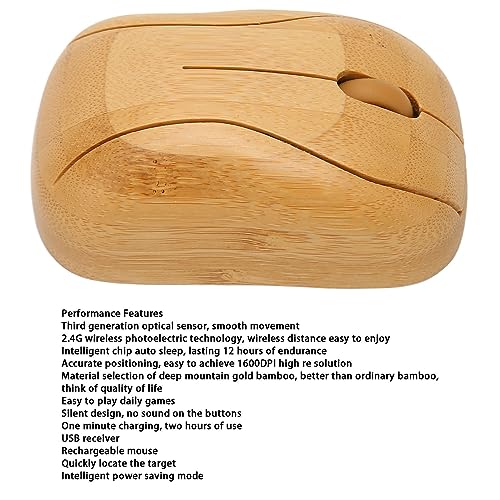Mouse Computer | GOWENIC Creative Bamboo Wooden 2.4G Cordless Mouse | Low Noise Wireless Computer Mouse with USB Receiver for Notebook PC Laptop