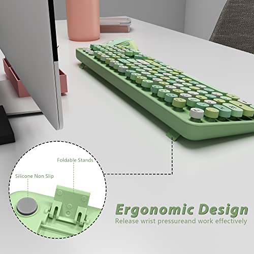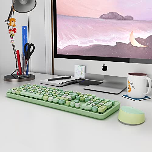 Green Keyboard | KOOTOP Wireless Keyboard and Mouse 2.4G | Retro Round Keycap Design for PC Mac Laptop
