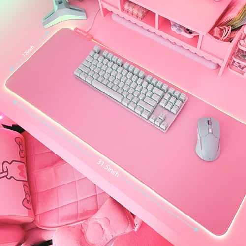 - The JMIYAV Pink RGB Gaming Mouse Pad features a large 31.5x12 inch surface area, providing ample space for your mouse and keyboard