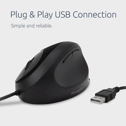 Kensington Pro Fit Ergonomic Wired Mouse | Black K75403WW | Premium Comfort
