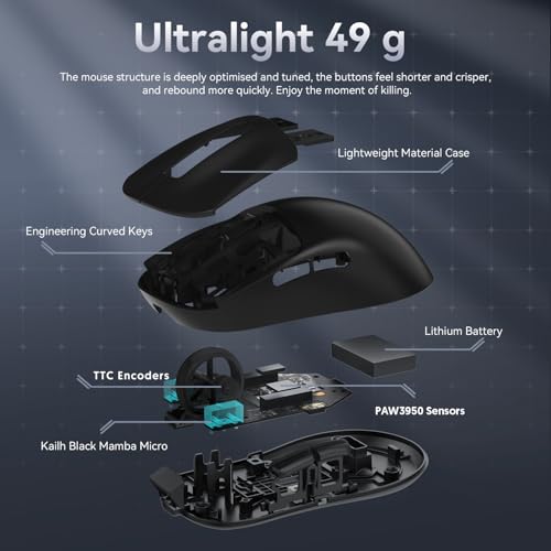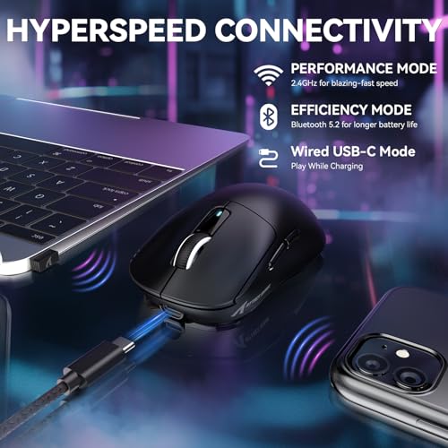 - This premium mouse offers tri-mode connectivity via BT5.4, 2.4GHz, or wired modes, ensuring seamless connectivity and versatility