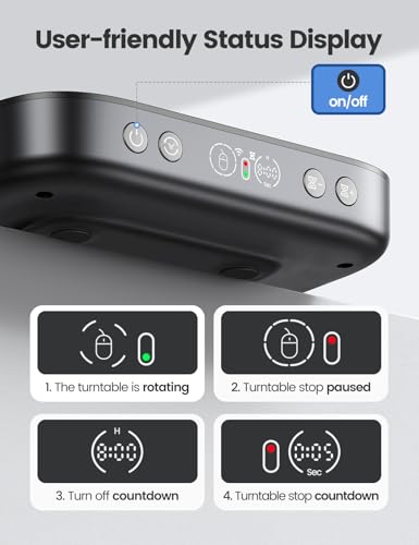 - The device features an LED display, ON/OFF and motion frequency adjustment buttons, and a mouse movement simulator that automatically moves the mouse to keep your PC active