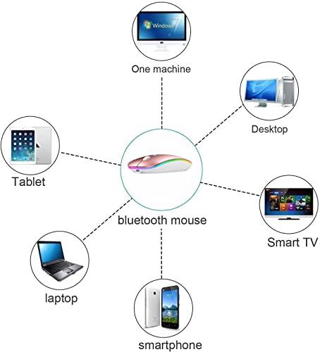 Experience seamless navigation with the Neises Wireless Bluetooth Mouse, designed to complement your MacBook Pro, Air, iMac, or iOS devices with its sleek rose gold finish. This advanced mouse features a stunning 7-color LED light that adds a touch of elegance to your workspace. With adjustable DPI settings, you can customize the mouse to fit your specific needs, whether you're working, gaming, or browsing. The built-in battery provides long-lasting power, eliminating the need for frequent replacements. As a top-rated Bluetooth mouse, the Neises Wireless Bluetooth Mouse is compatible with a wide range of devices, making it an ideal choice for those seeking a reliable and stylish mouse. For more information, you can refer to the Neises Bluetooth manual. How to use it: A. 2.4Ghz Mode - Switch to ON/OFF button to right and plug the receiver into the USB port of your computer. B. Bluetooth Mode - Turn on the device's Bluetooth function, switch to ON/OFF button to left, search the product of Bluetooth, and find BT5.1 Mouse to pair. Note: System Requirement - iPadOS 13 or later, iOS 13 or later, Windows 8/10 or later, Mac OS X 10.10 or later, Android 5.0 or later. Package Included: 1 x Wireless Mouse, 1 x USB Receiver, 1 x USB Charging Cable, 1 x User Manual, 1 x Type C Adapter. Note: Please charge the mouse for 2 hours before the first time to use it, and do not charge the mouse with a mobile phone charger.