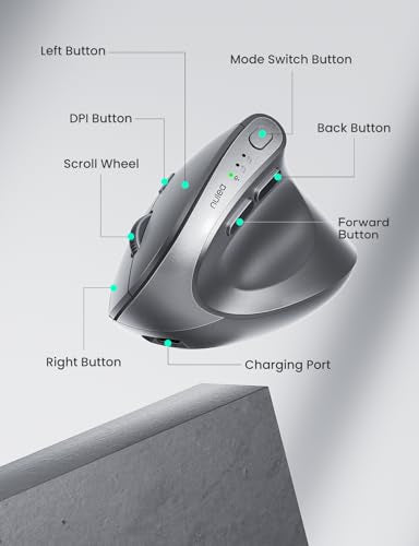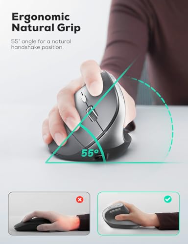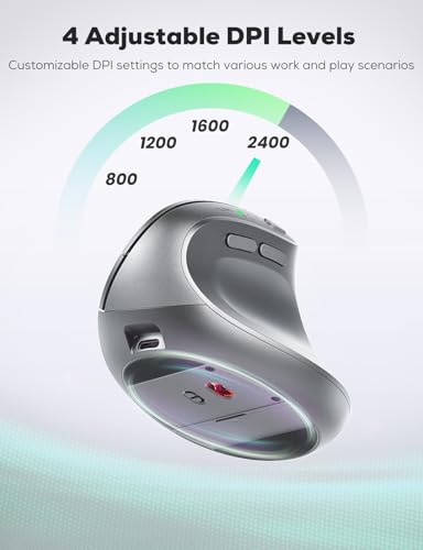 Nulea MD280 | Ergonomic Vertical Wireless Mouse Bluetooth 2.4G Dual Mode | 4 Adjustable DPI 800-1200-1600-2400 Rechargeable Silent Clicks, Grey