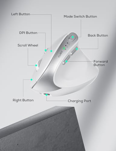 Nulea MD280 | Ergonomic Vertical Wireless Mouse Bluetooth 2.4G Dual Mode | 4 Adjustable DPI 800-1200-1600-2400 Rechargeable Silent Clicks, White