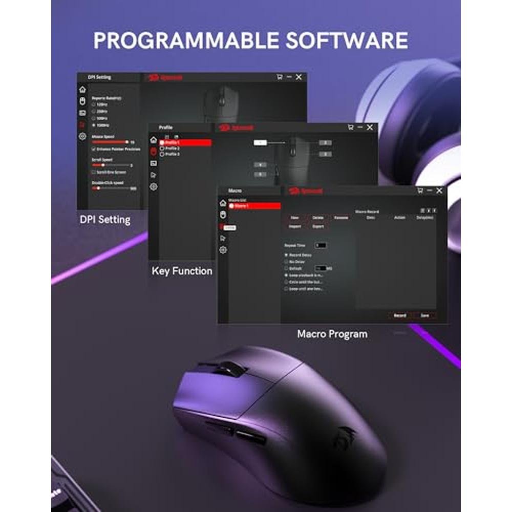 - Lightweight Yet Functional - The Redragon M821 wireless gaming mouse weighs just 54g in total, minimizing hand fatigue during long sessions. Its ergonomic shape and 5+1 programmable buttons (via software) ensure your comfort and customization