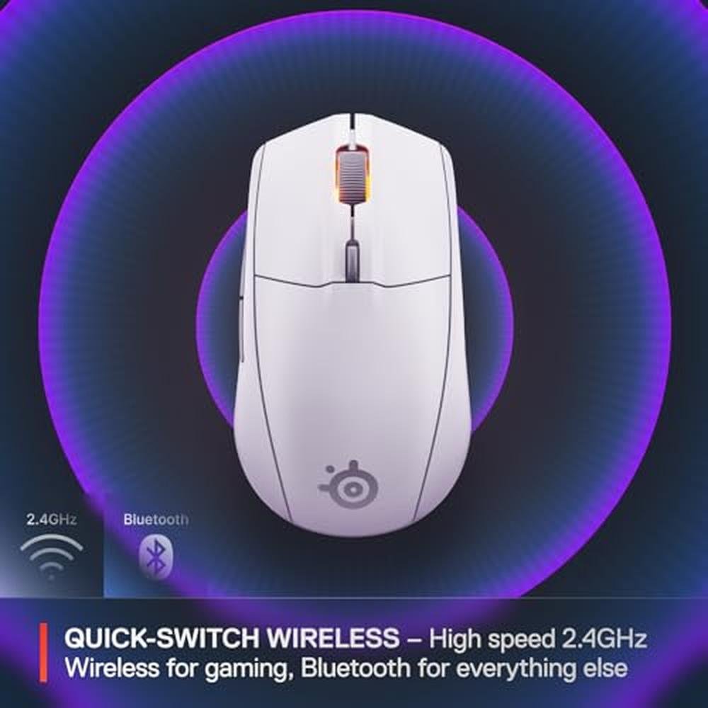 SteelSeries Rival 3 Wireless Gen 2 Gaming Mouse 2.4GHz and Bluetooth 18000 DPI TrueMove Air Optical Sensor 60 Million Click Durability Light-Weight 100% PTFE Feet White