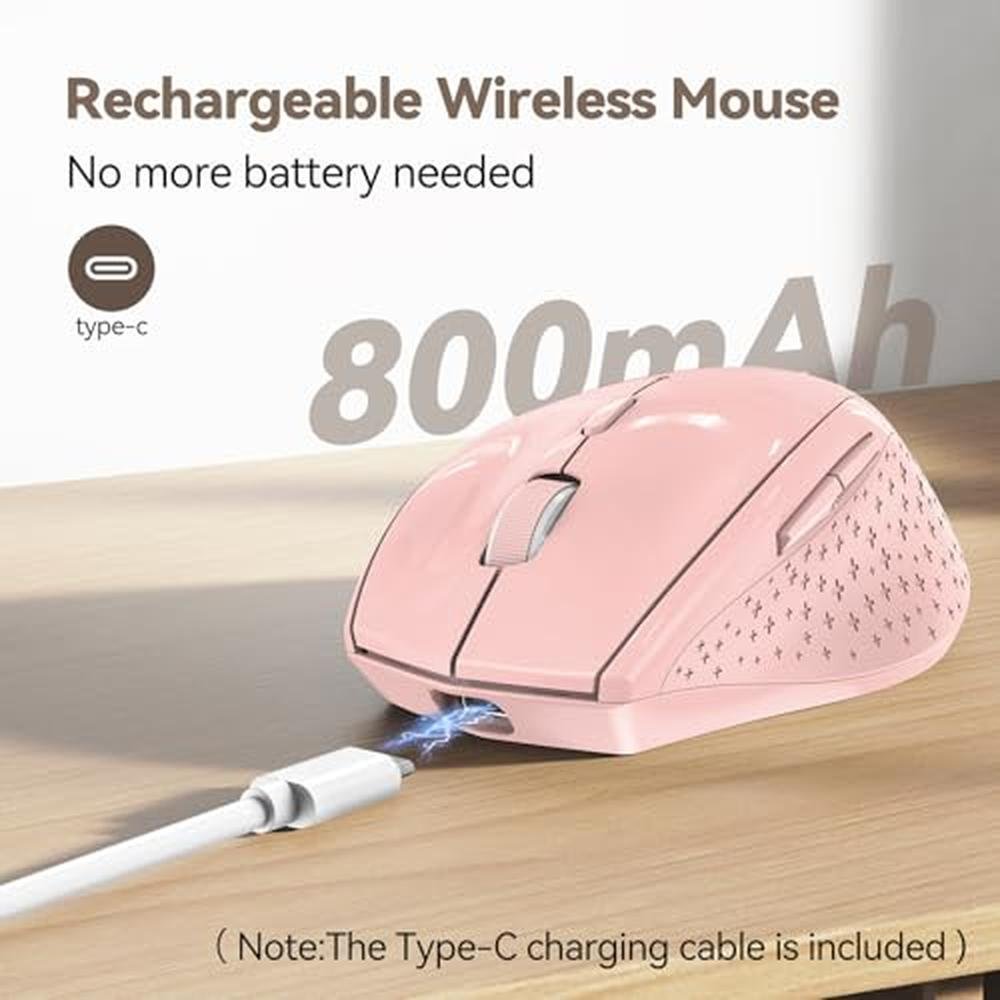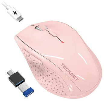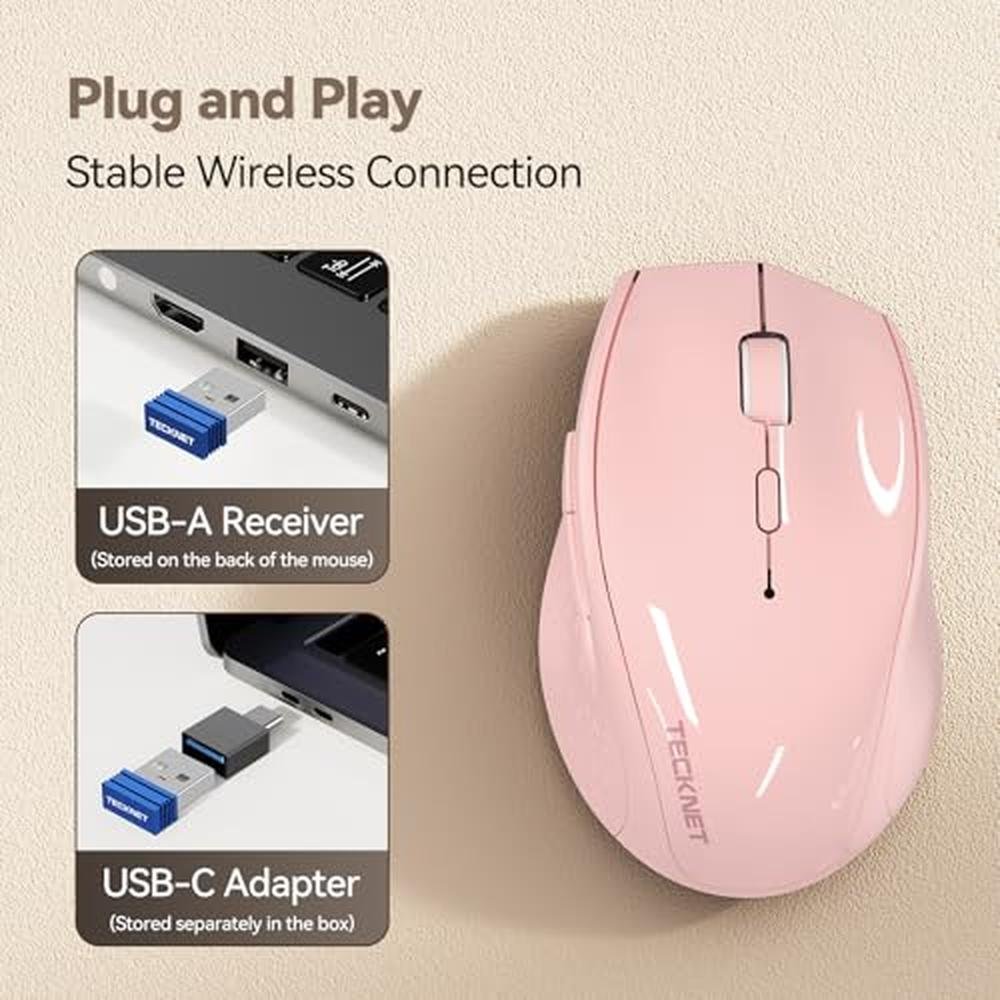 Wireless Mouse | TECKNET Jiggler Silent Click Rechargeable | 6400 DPI Ergonomic Mouse with USB-C Adapter