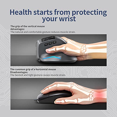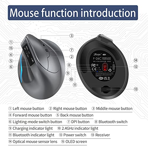 Mouse Zelotes | Zelotes Bluetooth Wireless Mouse with Display Rechargeable 3200DPI BT 5.0/3.0/2.4G 7 Buttons LED USB Optical Ergonomic Vertical Mouse | Premium Wireless Connectivity