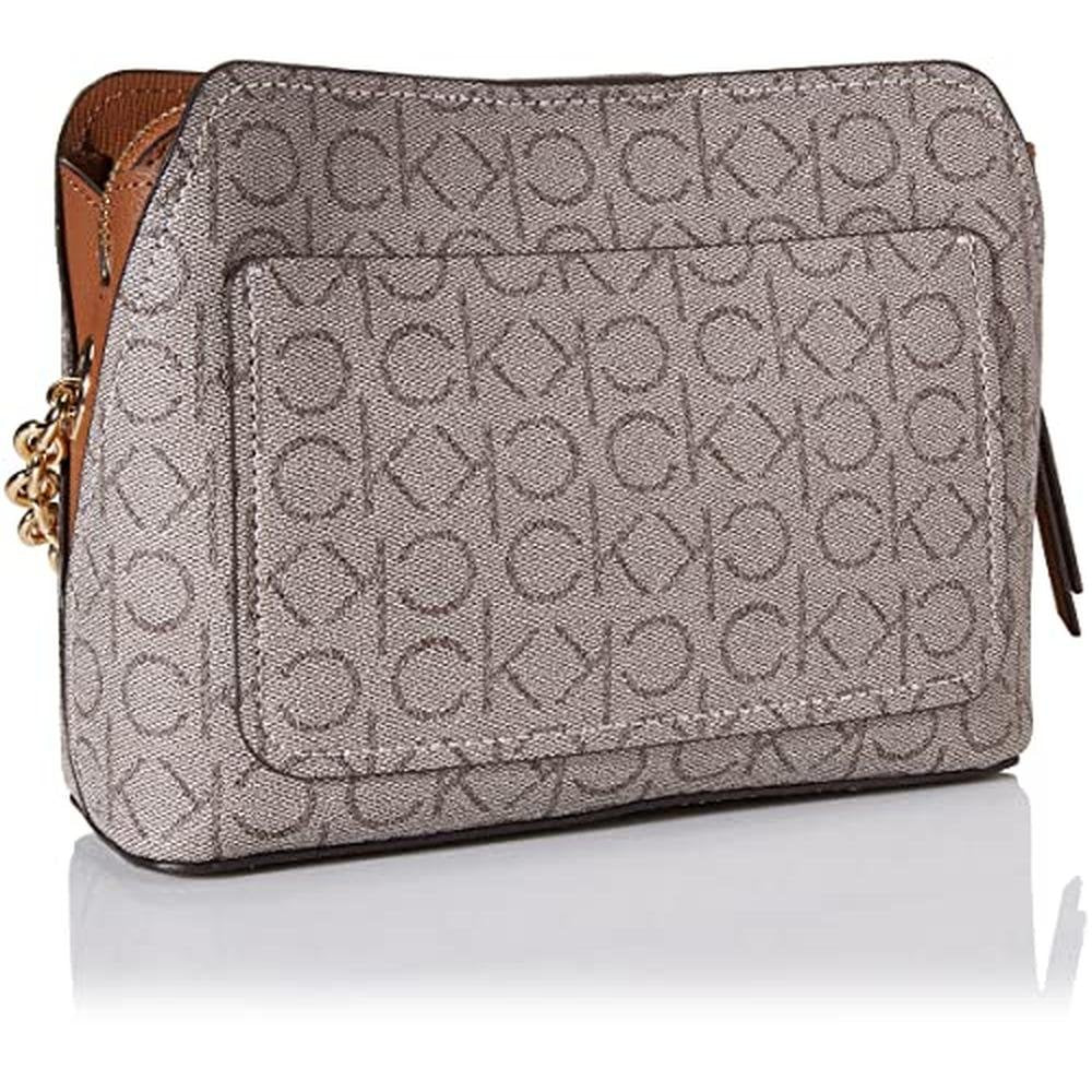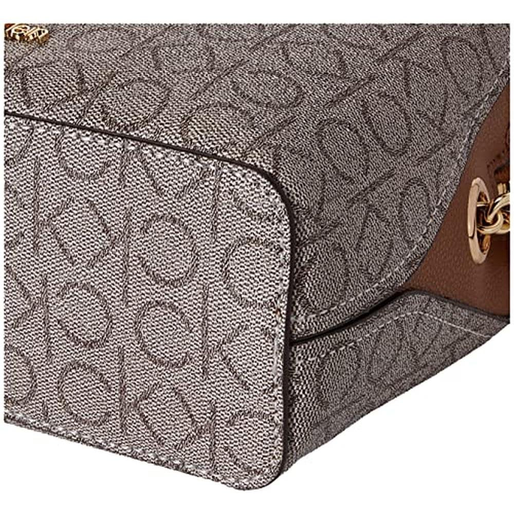 Calvin Klein Women's Hailey Signature Triple Compartment Chain Crossbody | Textured Almond/Taupe/Caramel Linear Design | Premium Quality