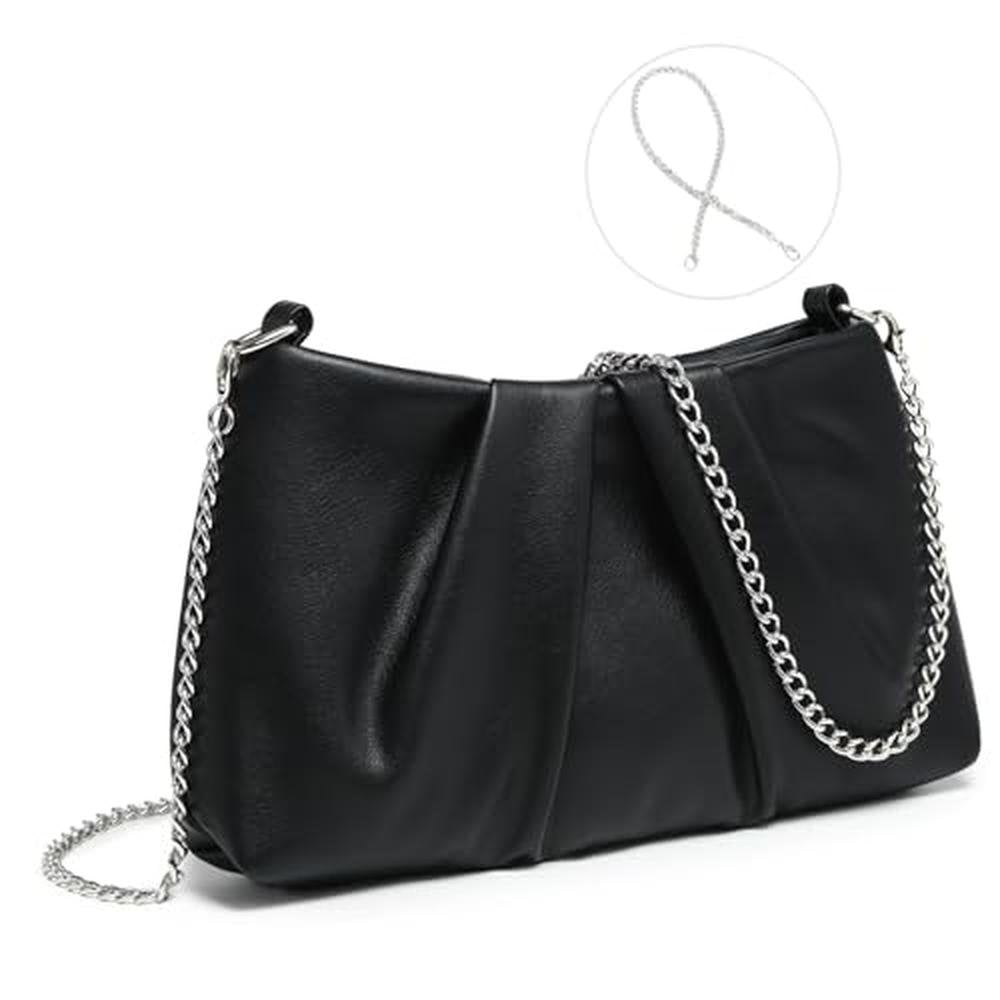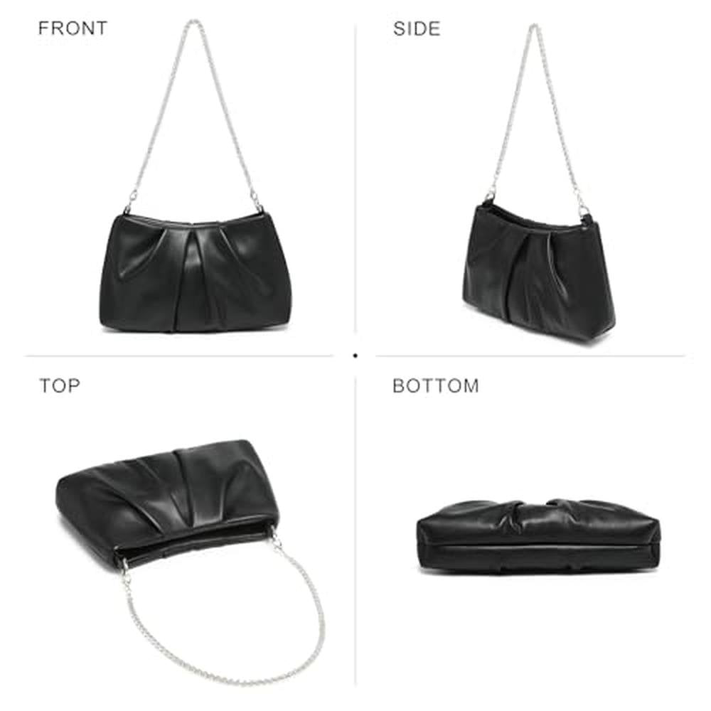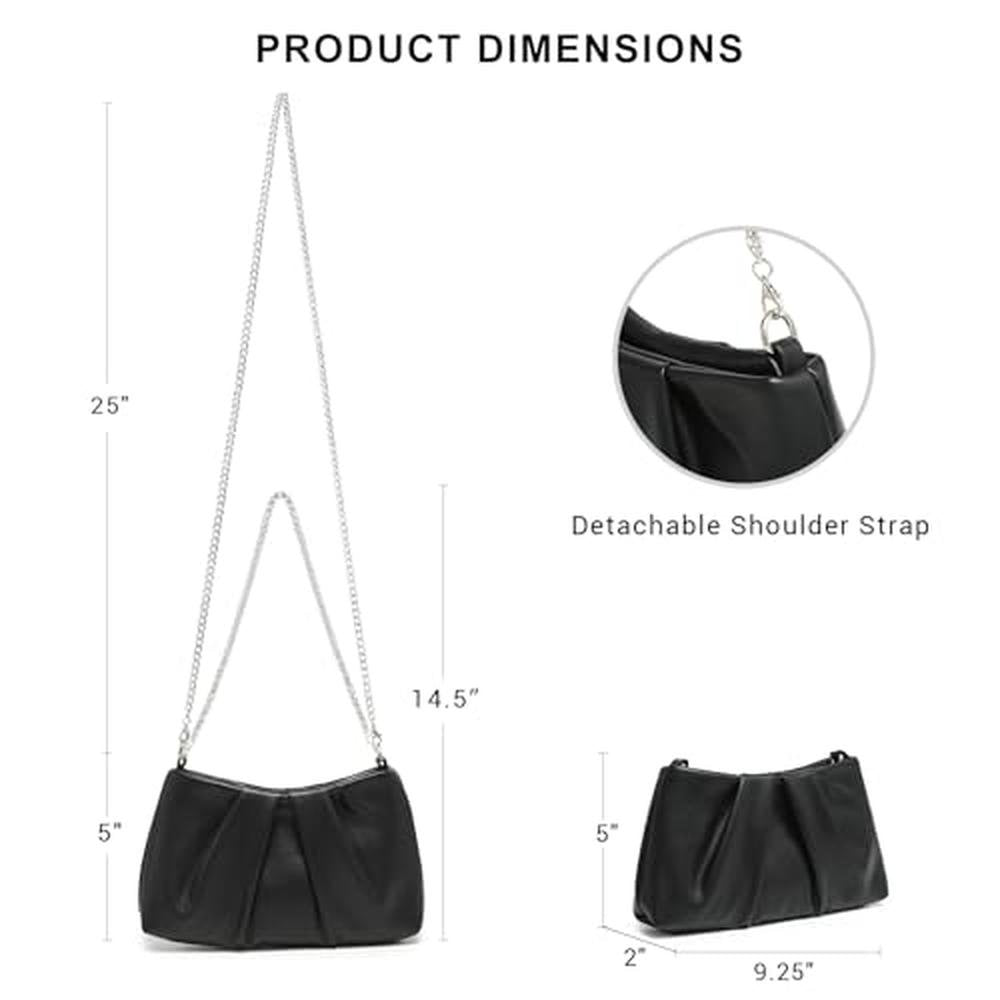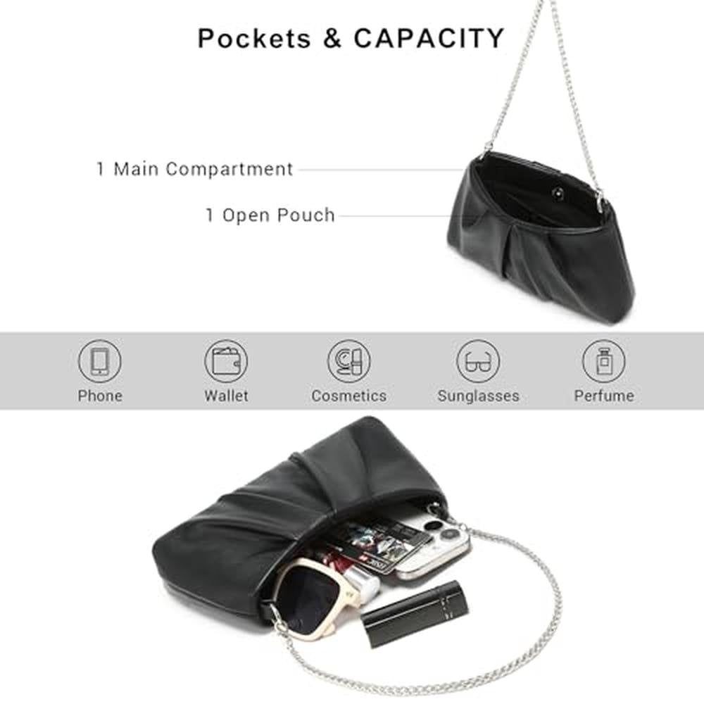 • The Dasein Elegant Pleated Evening Bag features a premium pleated design with soft vegan leather and 2 chain straps for versatile carrying options.