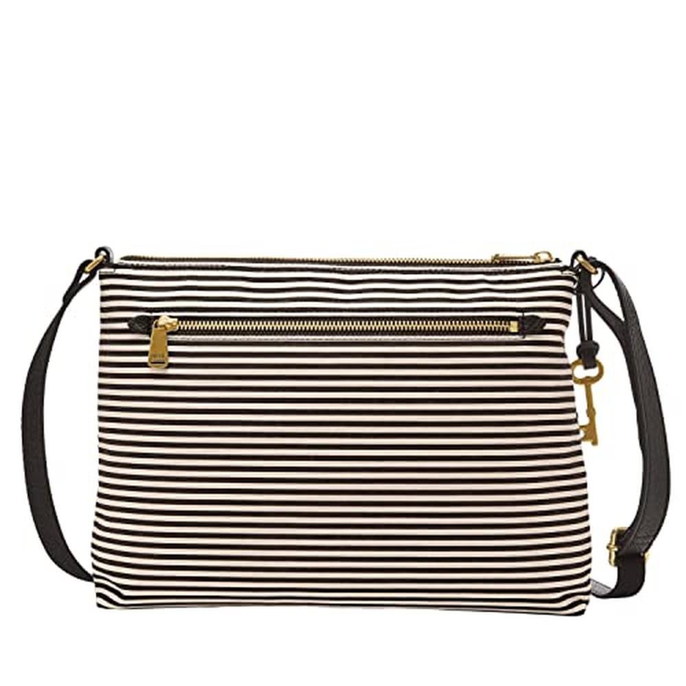 Fossil Women | Fossil Kinley Leather & Fabric Small Crossbody Purse Handbag Black Stripe | Premium Quality