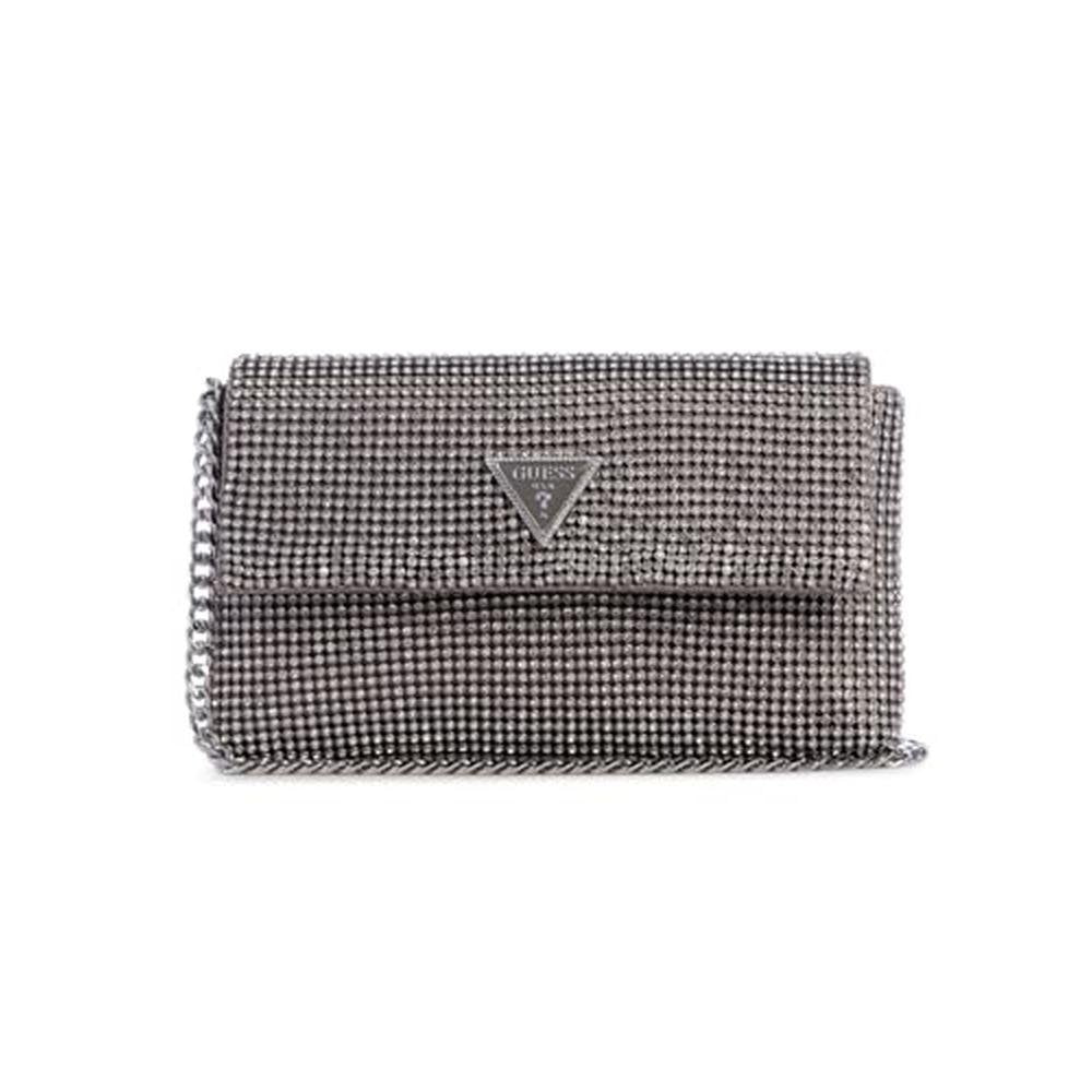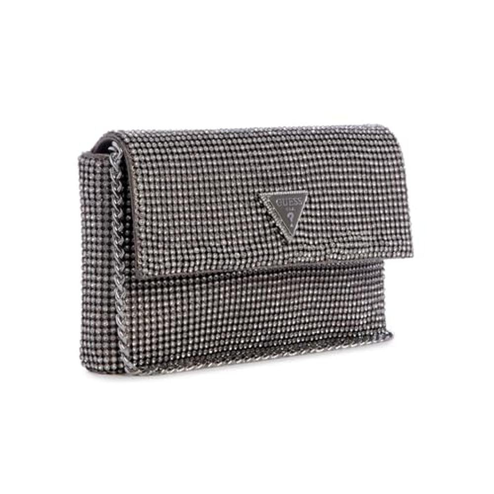 Premium Fashion Accessories | GUESS Zalina Flap Clutch, Silver | Elevate Your Evening Look