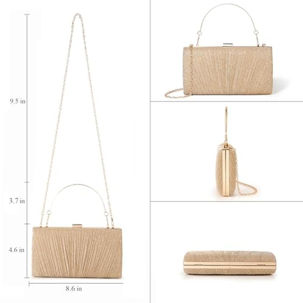 Experience the epitome of elegance with the Kseymeir Clutch Purses for Women, expertly crafted to elevate your evening look at formal events such as proms, cocktail parties, and weddings. Made from high-quality materials, this stunning gold evening handbag with chain features a beautiful pleated design, perfect for adding a touch of sophistication to your outfit. The Kseymeir clutch is designed for women who desire to exude refinement and poise, making it an ideal accessory for black-tie events or nights out on the town. With its sleek and sophisticated style, this clutch purse is sure to turn heads. The Kseymeir clutch collection offers a range of stylish and versatile designs, ensuring that you can easily find the perfect complement to your unique sense of style.