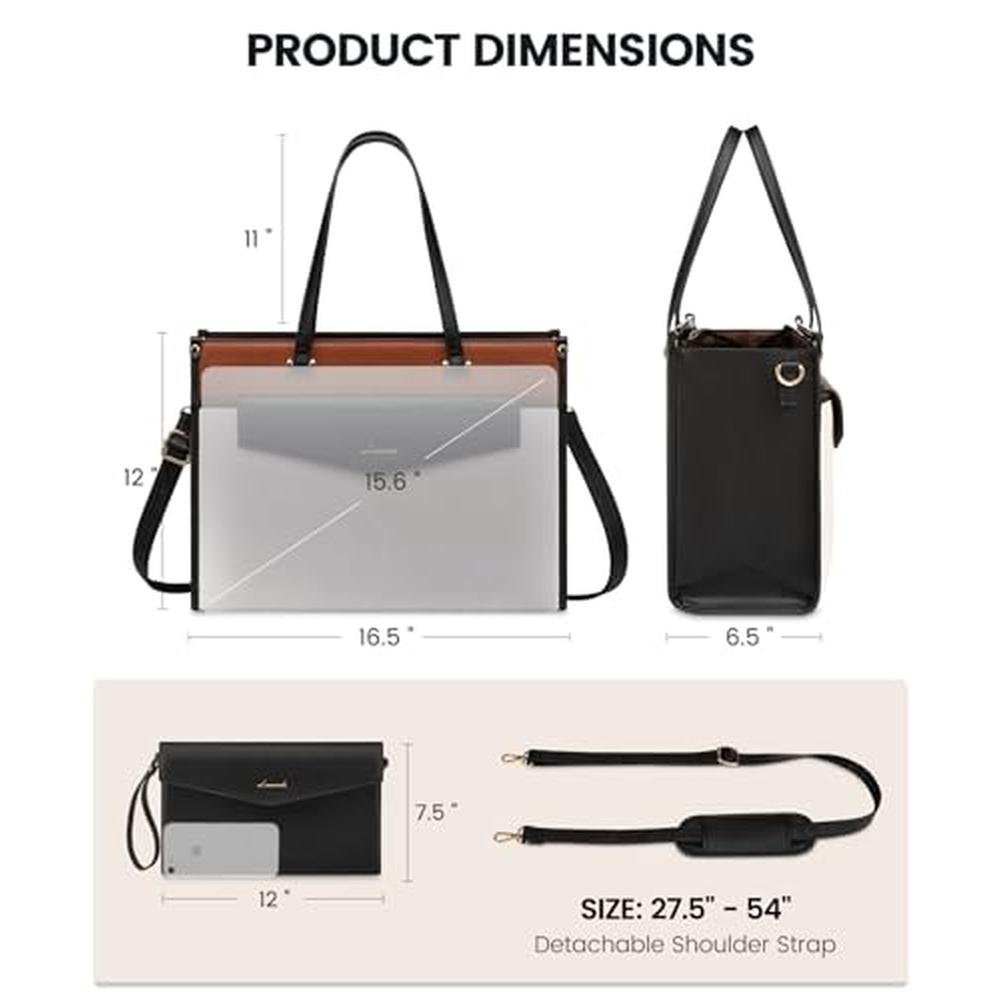 - Features a spacious laptop tote purse with a detachable clutch purse, perfect for storing laptops up to 15.6 inches and other essentials