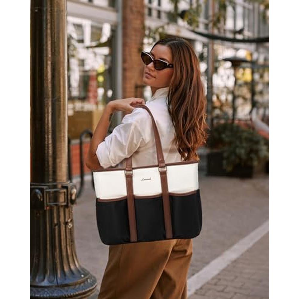 Experience the epitome of sophistication with the LOVEVOOK women's work tote, meticulously designed for the modern professional. This exquisite laptop tote bag boasts multiple pockets, including a dedicated 17-inch laptop sleeve, ensuring effortless organization of your essentials. Crafted with premium materials and a durable design, this upscale handbag is perfect for daily use, travel, or as a college bag. With its refined professional look and versatile functionality, this top-tier bag is an excellent choice for anyone seeking a reliable and fashionable work tote.
