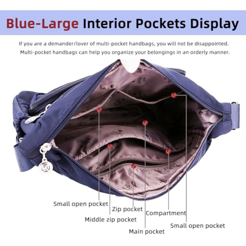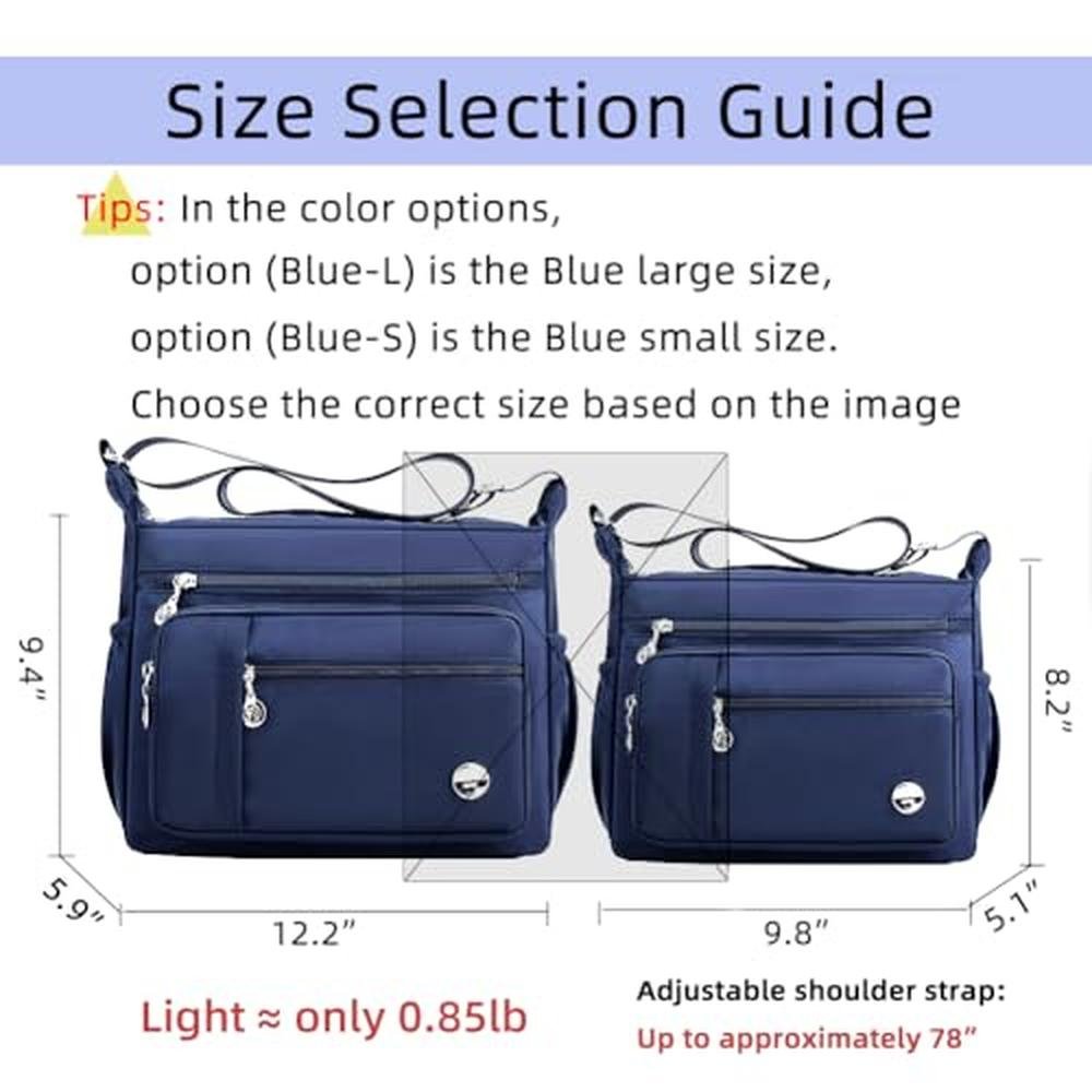Two Sizes Options: Small/Large, please check the size before ordering. Colors Options: 4 (black/dark blue/purple/burgundy) Department: Neutral Features: Multi-Pocket Made of practical water-resistant and stain-resistant nylon fabric that is durable, ultra-lightweight, and high-quality construction, easy to care for wipe clean or machine wash. Plenty capacity design most of your daily necessities can be loaded. Lightweight Water Resistant Nylon Material Water Resistant: Don't worry about wetting the items of the bag if splashing water on the surface of the bag. Adjustable Shoulder Strap Comfortable and Convenient Allows you to wear the bag on your shoulder or across your body. Many bag styles for you to choose and meet all your needs.