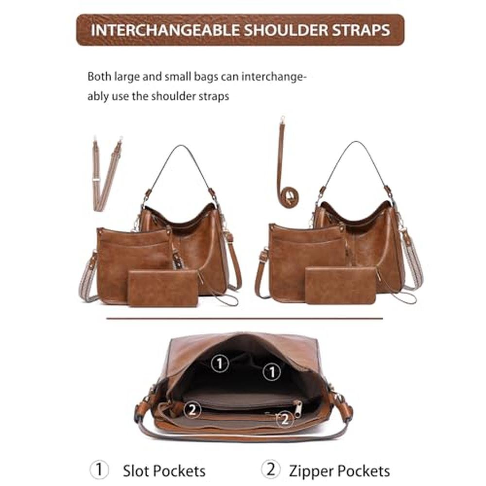 Purses Women | 3PCS Crossbody Bags Set Large Leather Purse Shoulder Handbags | Adjustable Straps