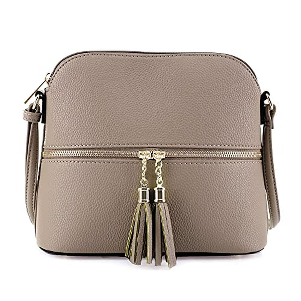 SG SUGU Lunar Lightweight Medium Dome Crossbody Bag | Premium Vegan Leather with Double Tassels and Adjustable Strap | Ultimate Style and Functionality