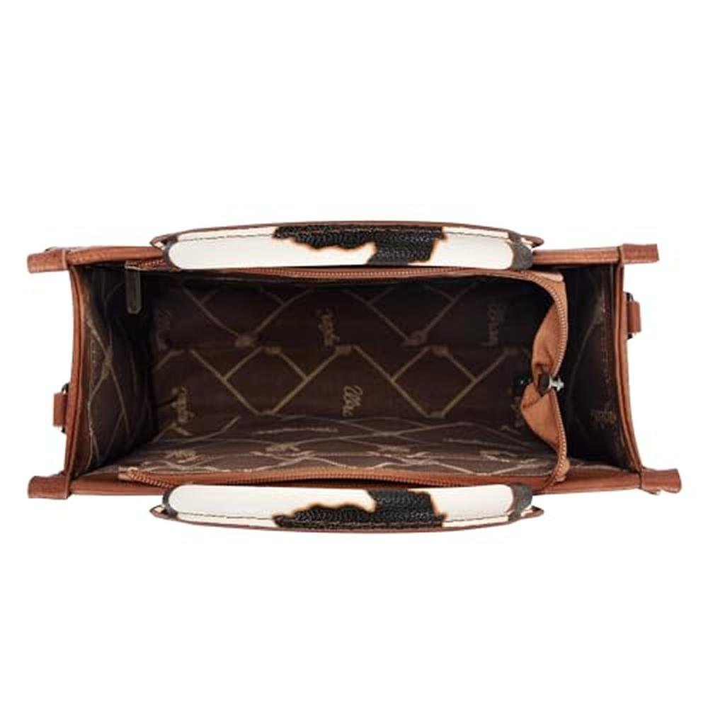 Wrangler Tote Bag for Women | Small Crossbody Cow Print Satchel | Top Handle Purse with Strap