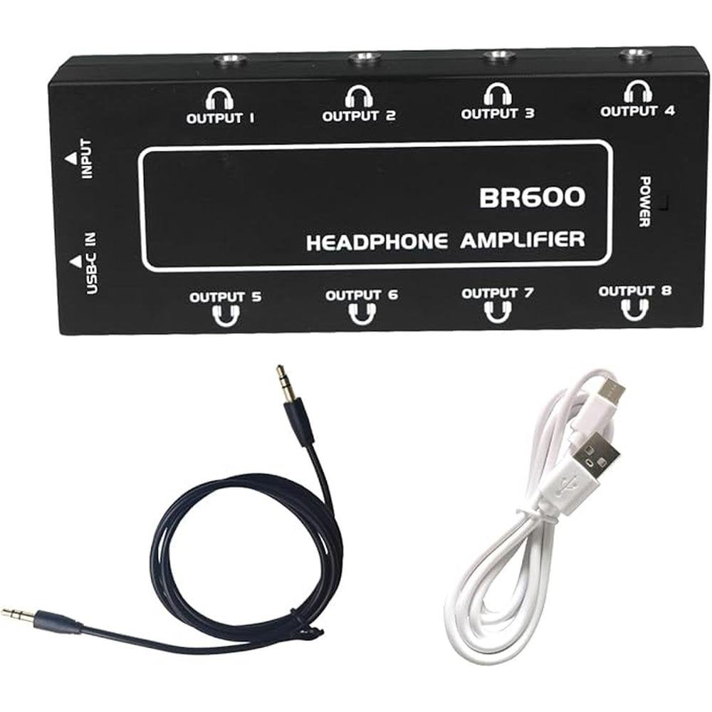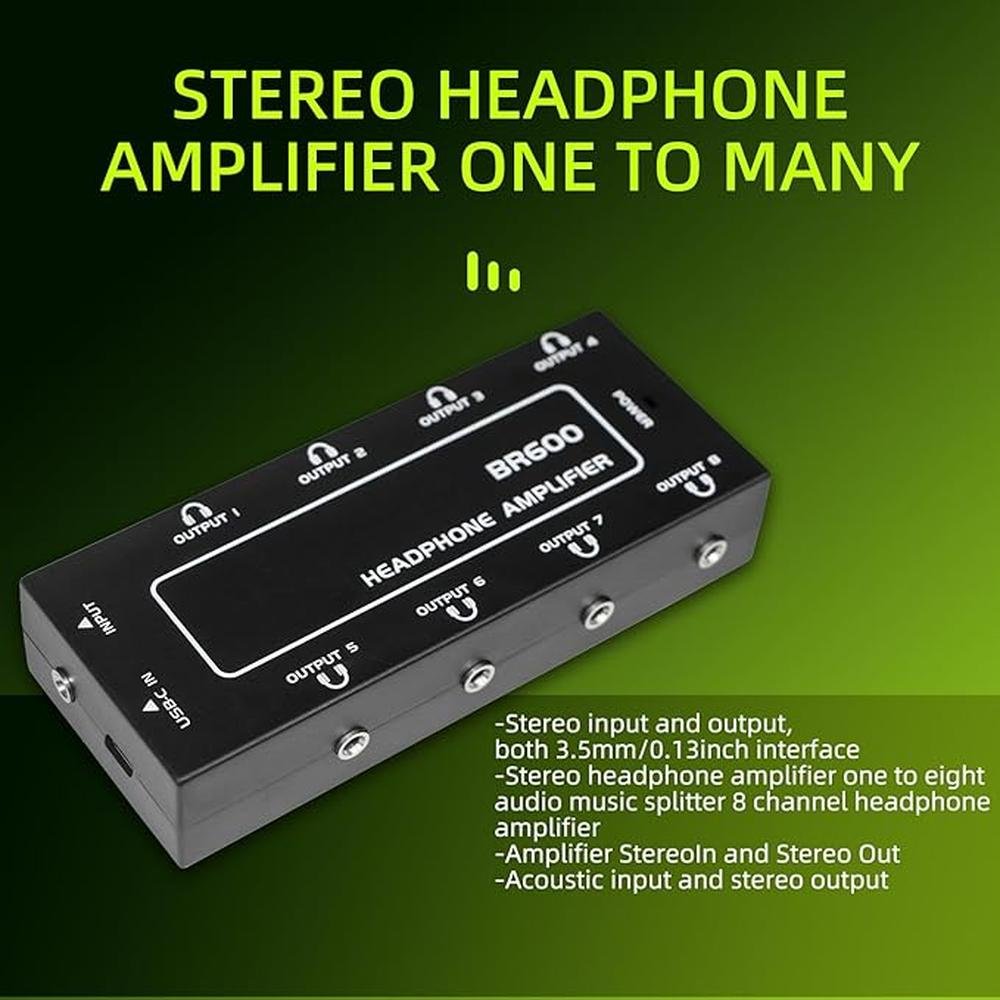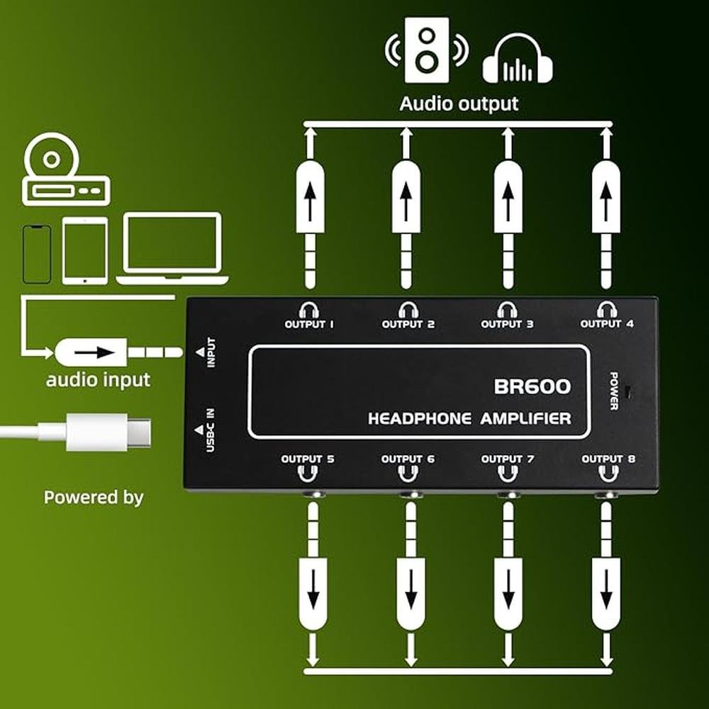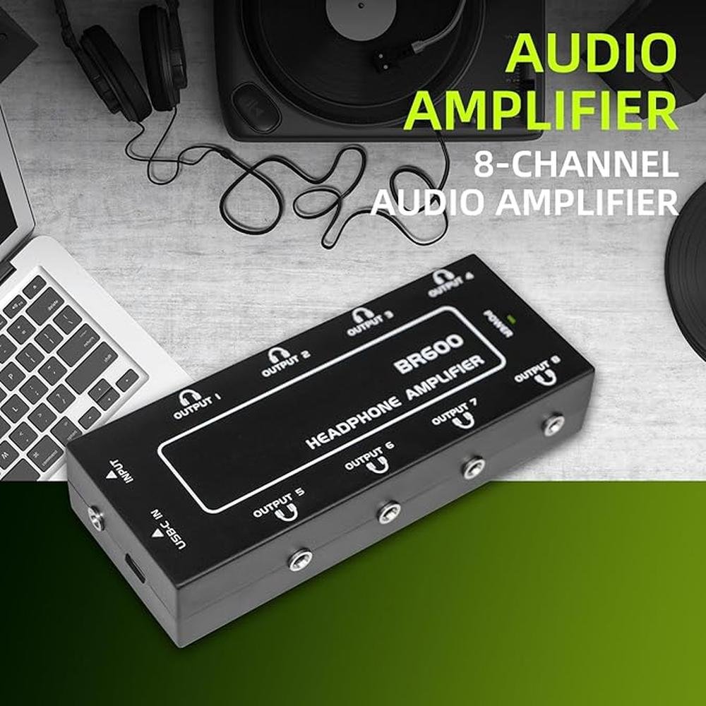 8-Channel Stereo Headphone Amplifier Mini Earphone Splitter with Type-C 5V Input and 3.5mm Headphones Output
