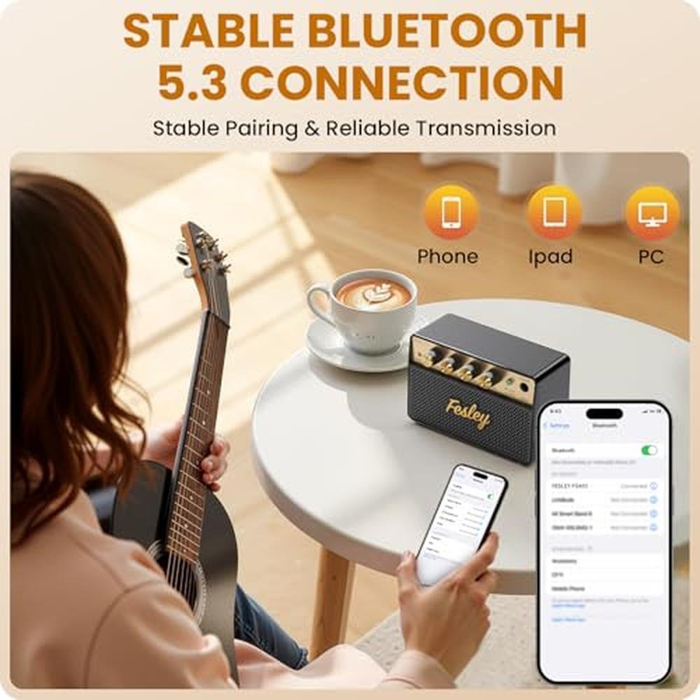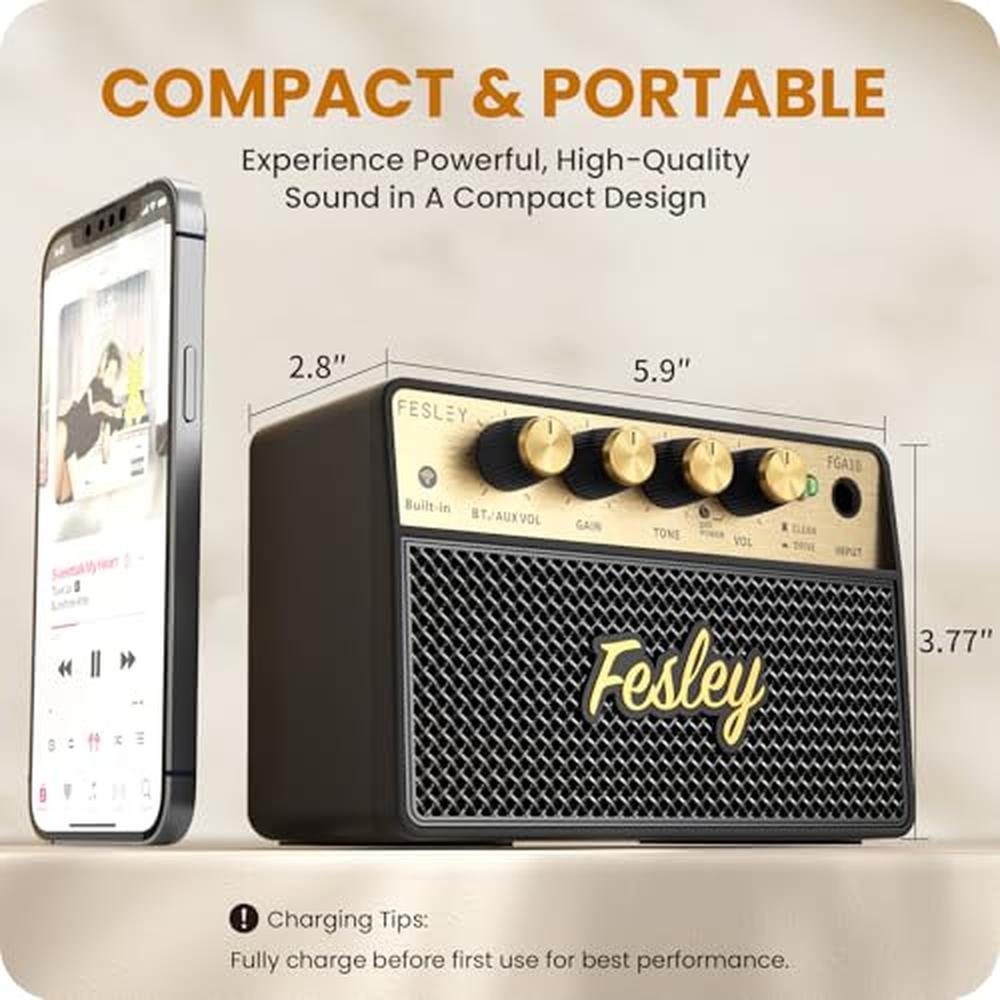 • Compact Power& Big Sound: The Fesley full-size tone and exceptional portability make it the perfect practice amp and Bluetooth speaker. At under 4 inches tall and featuring a 2-inch speaker, the Fesley ultra-portable smart guitar amp might be small, but it packs a powerful 10 watts of full-range sound. Its impressive tone rivals amps much larger in size.