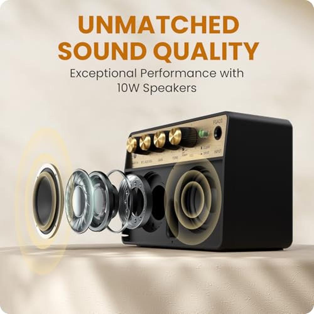 • Enhanced Output Performance: The FGA10 mini guitar amplifier boasts a robust 10-watt rated power output, with a peak output reaching up to 15 watts. This additional peak power capacity ensures amplified sound bursts, providing greater volume and dynamic range when required.