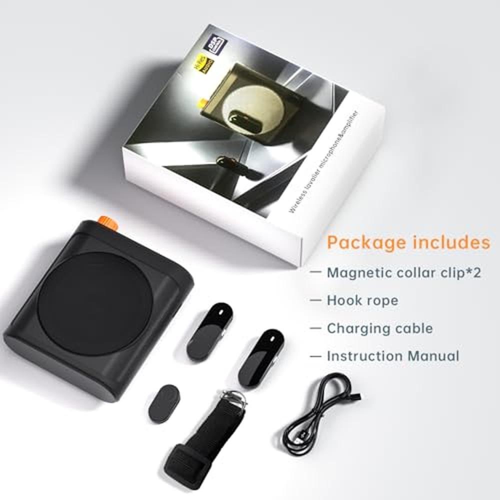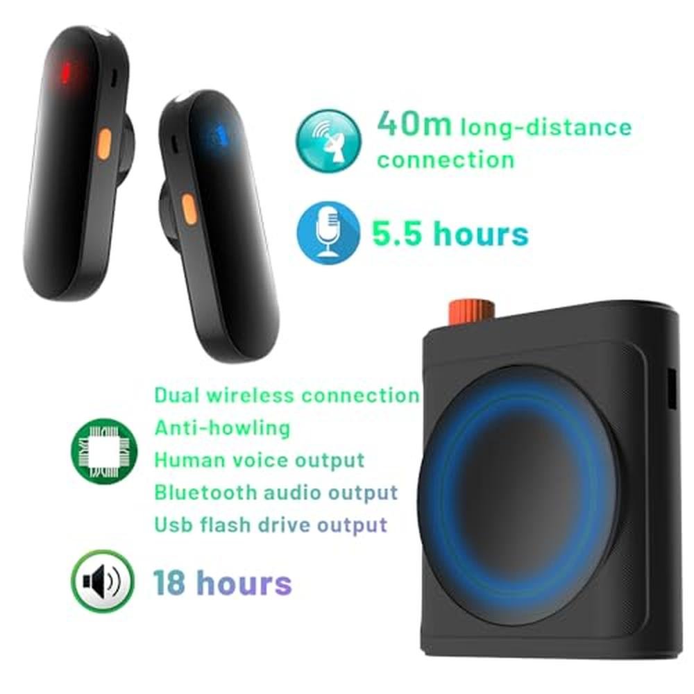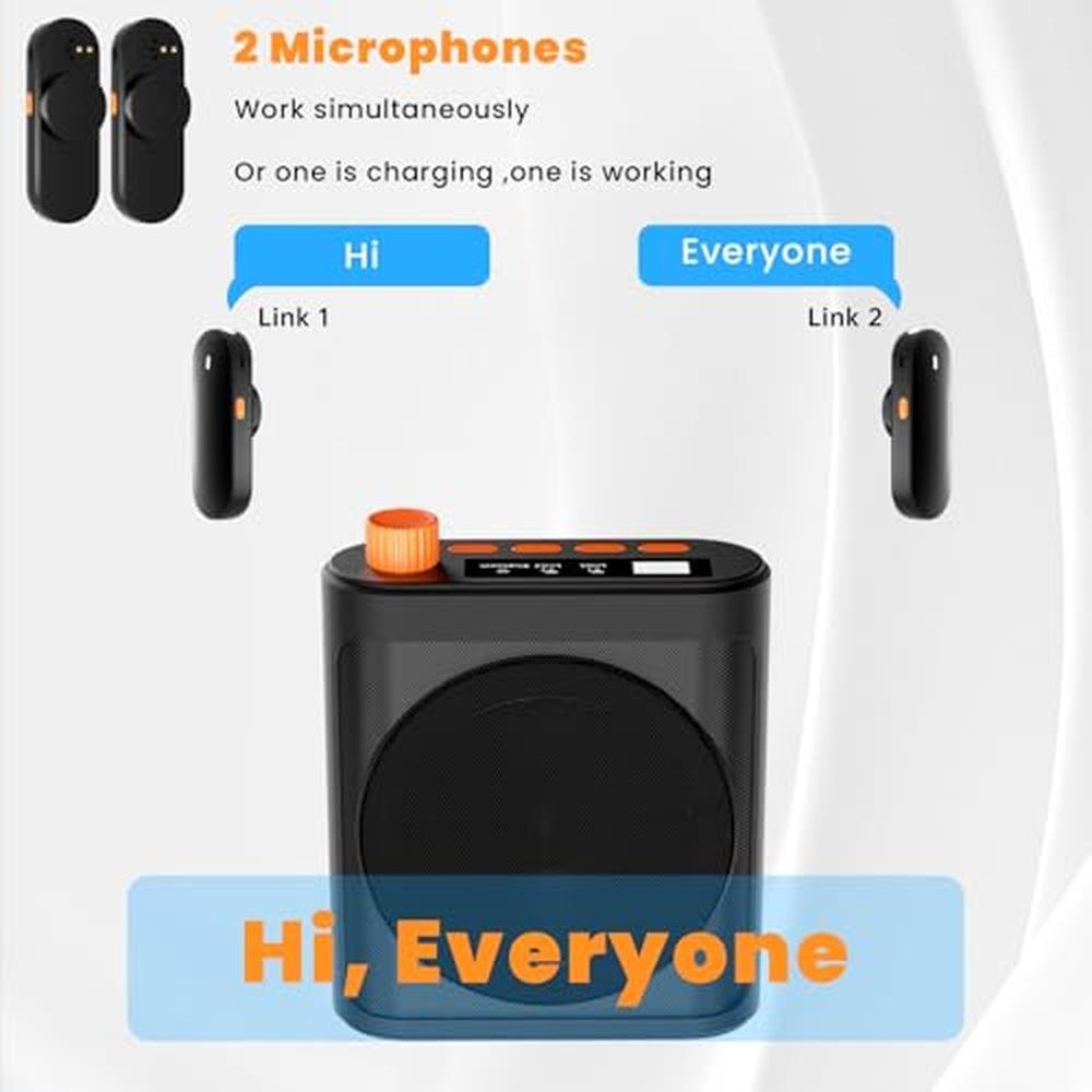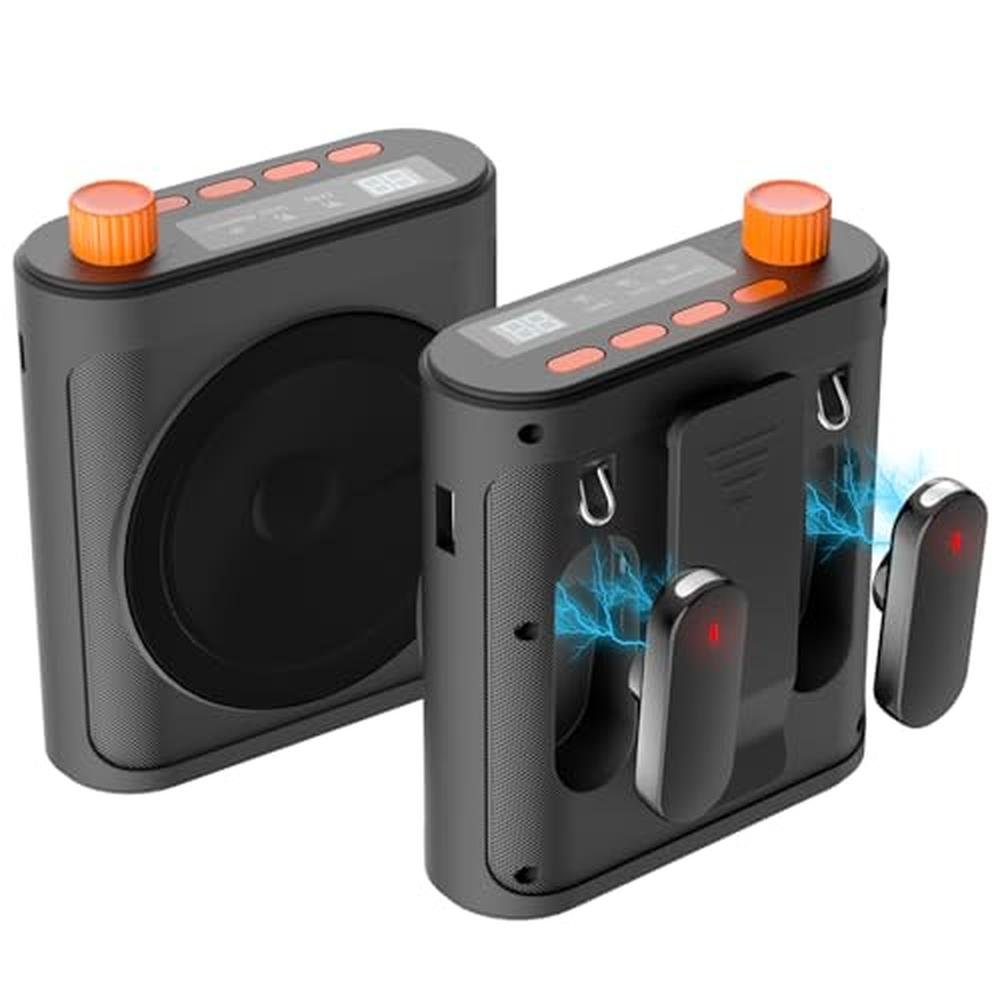 Portable Voice Amplifier with 2 Wireless Microphones for Teachers & Elderly Rechargeable High Definition Sound Quality Voice Amplifier-Grey