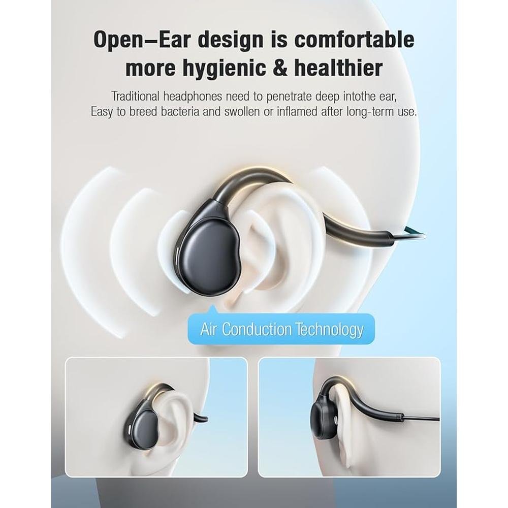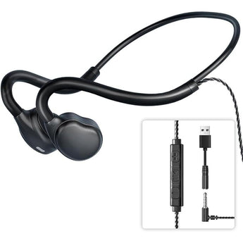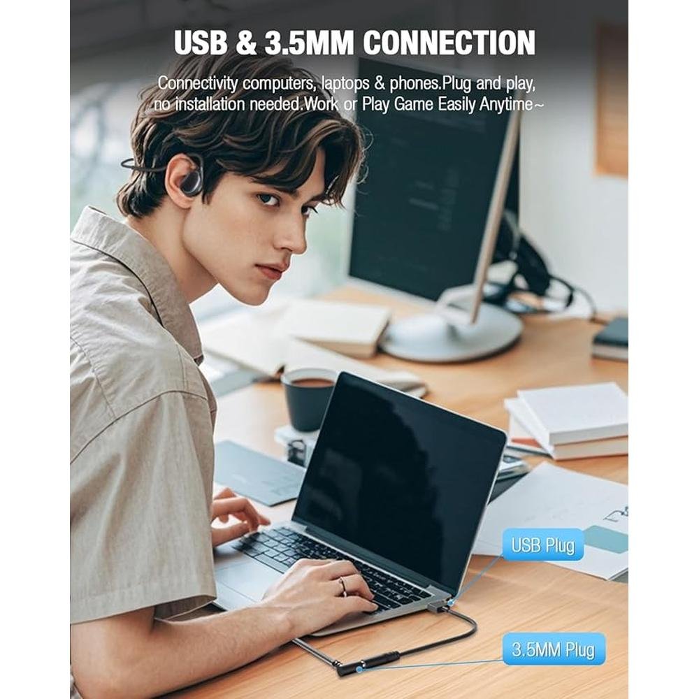 3.5mm Open Ear Headphones Wired headphones with Mic, 3.5mm+USB Connection, Air Conduction Wired Headset with Premium Sound Ultra-Light USB Headset Perfect for Phones Tablets PC Speakers -Black