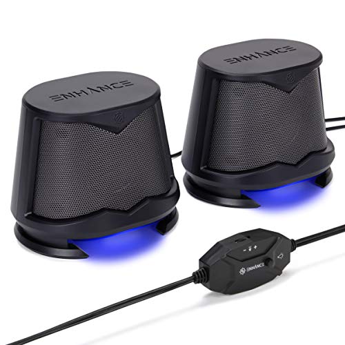 ENHANCE SB2 PC Speakers | 2.0 USB Powered Design with Blue LED Glow Lights | 10W Peak Sound for Immersive Gaming Experience